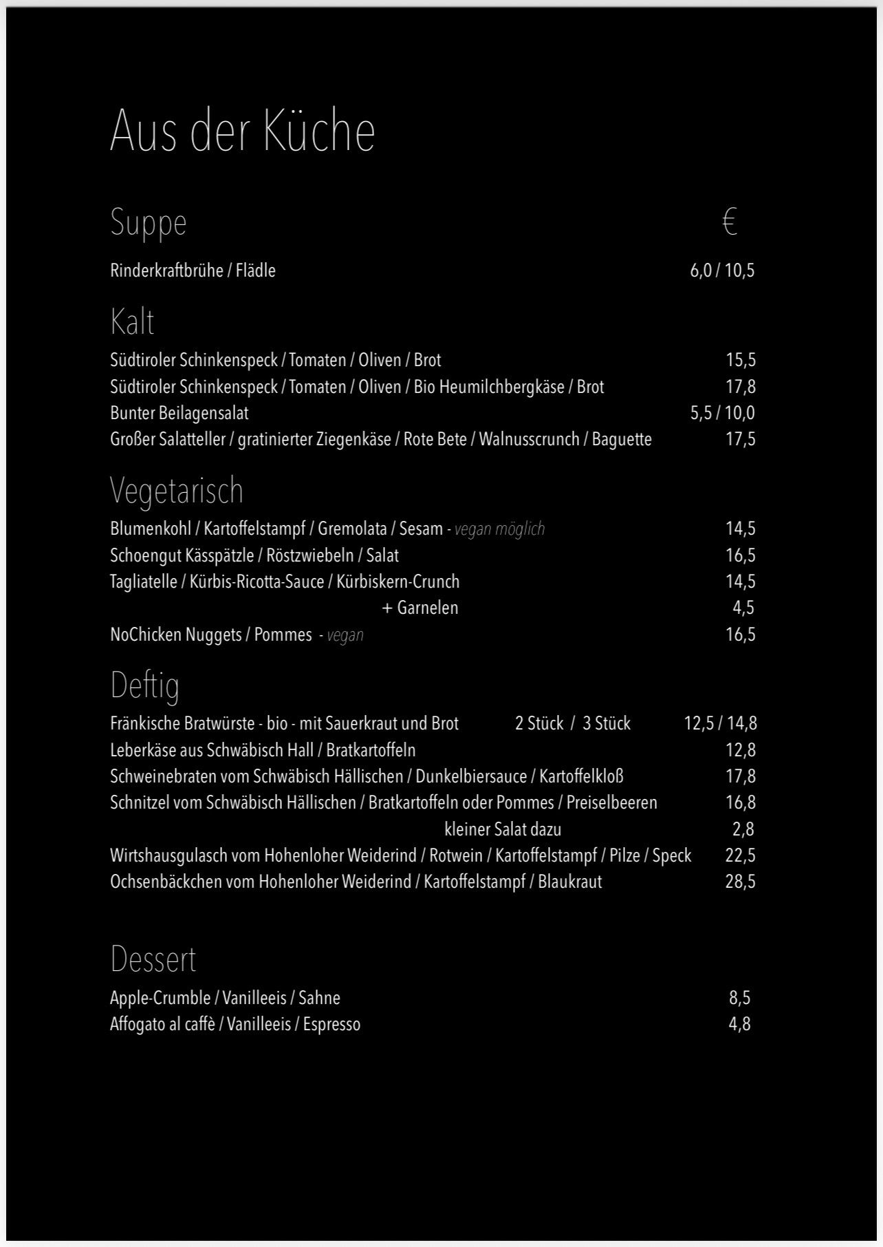 Wir legen großen Wert auf die Qualität und die Herkunft unserer Produkte. Regional, saisonal und verantwortungsbewusst gegenüber Tier und Natur.